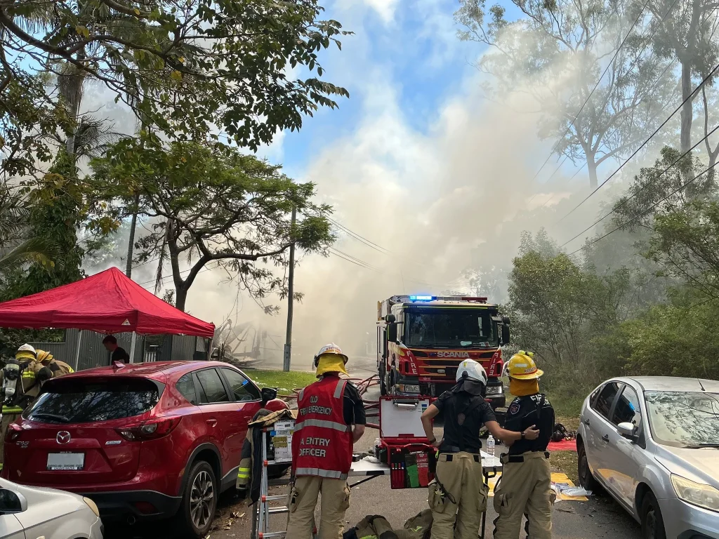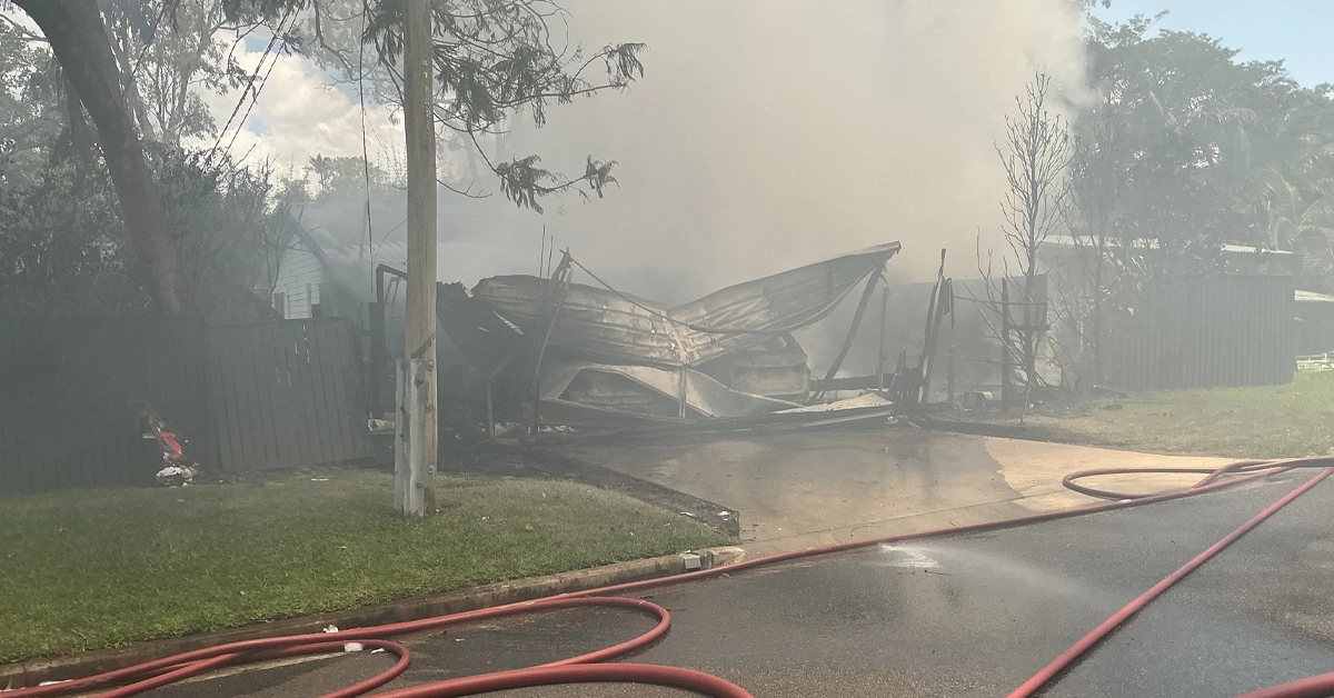 Queensland Fire Department Cannon Hill Commander Chris Daniel said the fire originated at the front of the house and caused catastrophic damage. The carport collapsed, trapping two vehicles beneath the wreckage.